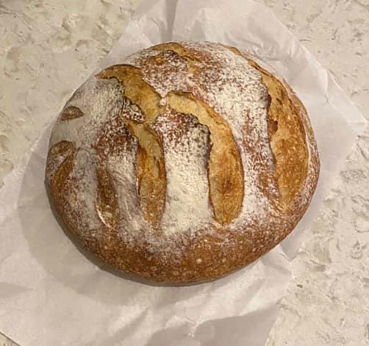 Soon we all got hungry. My sister Fran, the queen of sourdough bread, had brought two she’d made fresh that morning, carried from Colorado – one loaf and one boule. She and I went about slicing the bread and putting it into the freezer. We left out several pieces of the loaf that we’d heat to crusty for dinner that night. We’d share more of the loaf during our visit. The boule I’d have all for myself.
