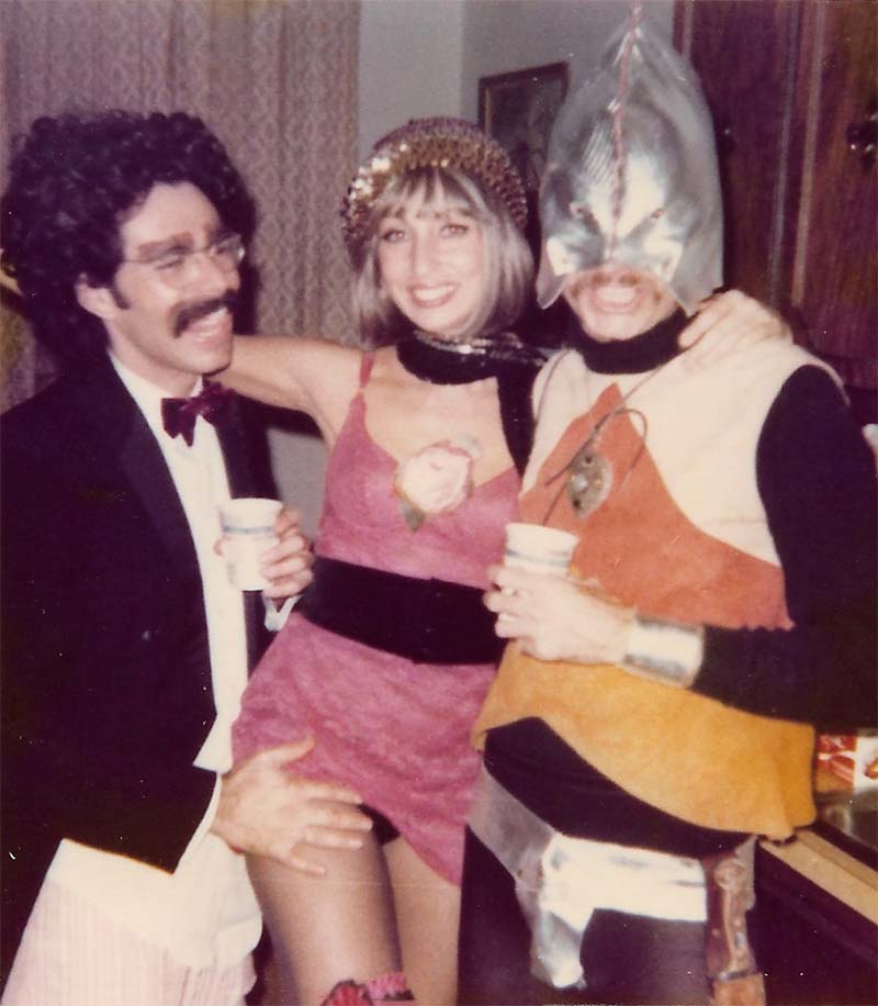 There was also an assortment of other seventies photos from when I and my then partner, who, years later would briefly become my third husband, had lived in Fort Lauderdale, FL. During that time we had had several theme parties — A New Year’s Eve toga party, a New Friends and Old Lovers Valentine’s Day party, an amazing Halloween costume party. I was dressed as a French “women of the evening” in a frosted blond wig I actually wore on occasion back then, a gold sequined beret, and a very short bra slip I had dyed red and worn over a black bikini bottom. Frank, my partner, was an impressive Groucho Marx.